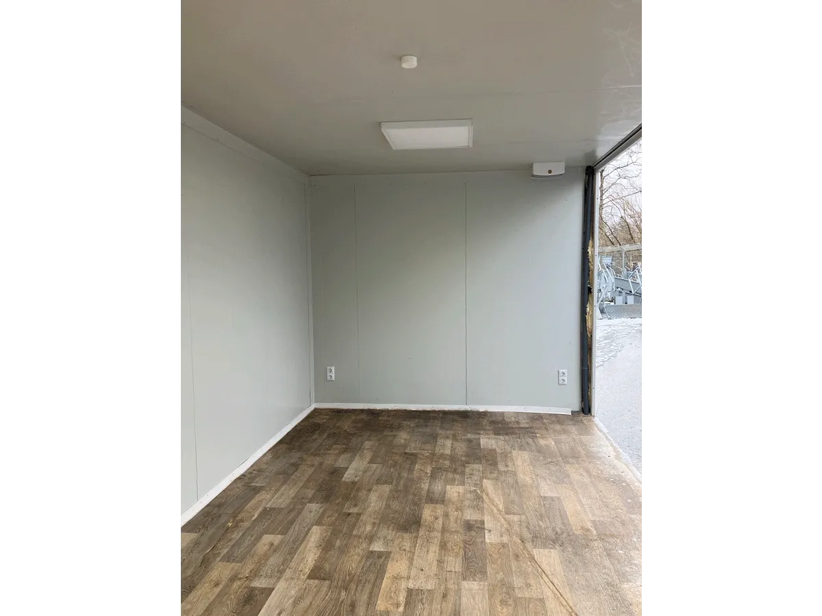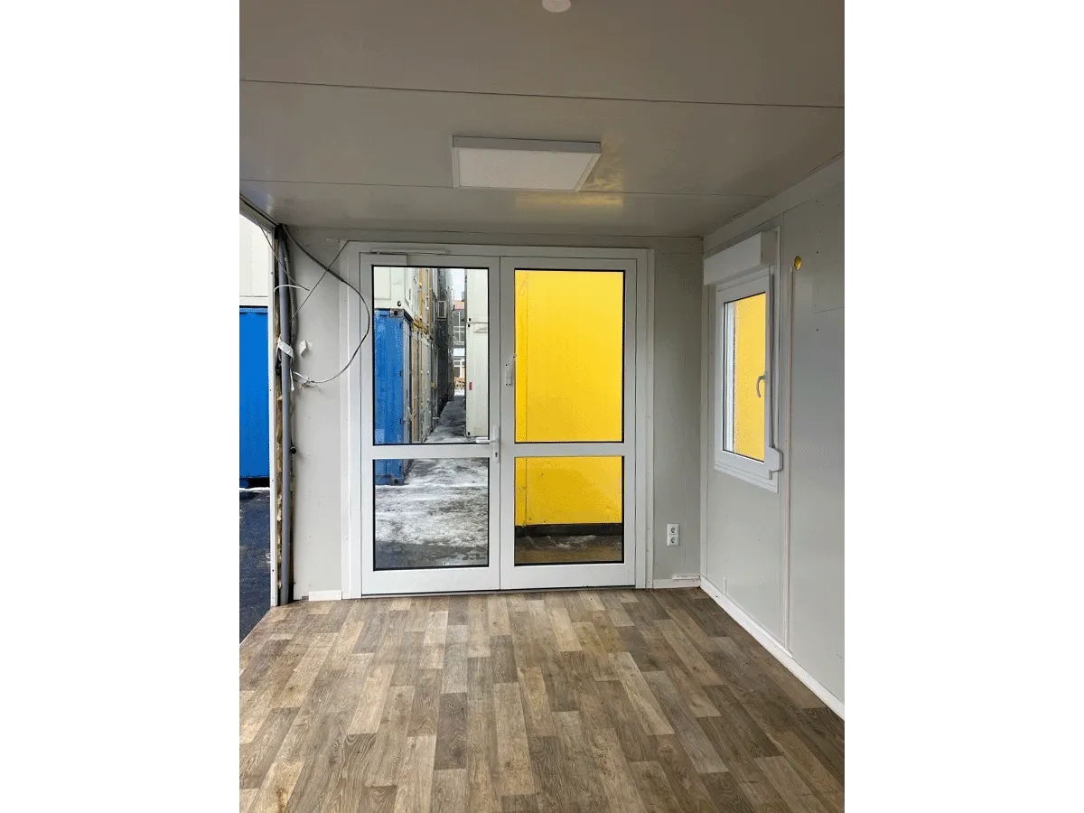 Dieser gebrauchte 20-Fuß-Aufenthaltscontainer mit 3 m Breite bietet auf ca. 18 m² Nutzfläche eine besondere Ausführung mit Glastür an der Stirnwand und Holzdielenboden und eignet sich für den Einsatz als Aufenthalts- oder Pausenraum. Zur Ausstattung gehören zwei LED-Paneele, mehrere seitliche Dreh-Kipp-Fenster mit Rollladen sowie eine vorhandene Elektroinstallation (400/230 V, CEE 32 A). Hinweis: Ehemaliger Anlagenteil – eine Seitenwand fehlt. Bemerkungen zum Zustand: Bodenschäden, Bohrlöcher, Elektronikschäden, ein fehlender Rauchmelder, Rost, beschädigte Zierleisten sowie optische Gebrauchsspuren im Innen- und Außenbereich. Außenmaße: 6.055 × 3.000 × 2.890 mm.