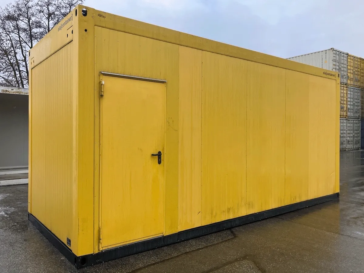 Der Container befindet sich in gebrauchtem Zustand und wird grundgereinigt übergeben. Eine DGUV-Prüfung wird im Rahmen des Kaufs durchgeführt. Auf den Bildern eventuell sichtbare Einrichtungen oder Ausstattungsgegenstände gehören nicht zum Lieferumfang und sind nicht Bestandteil des Kaufvertrags. Weitere Detailinformationen stellen wir Ihnen auf Anfrage gerne zur Verfügung.