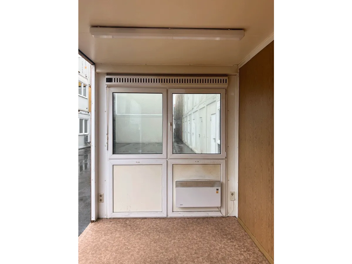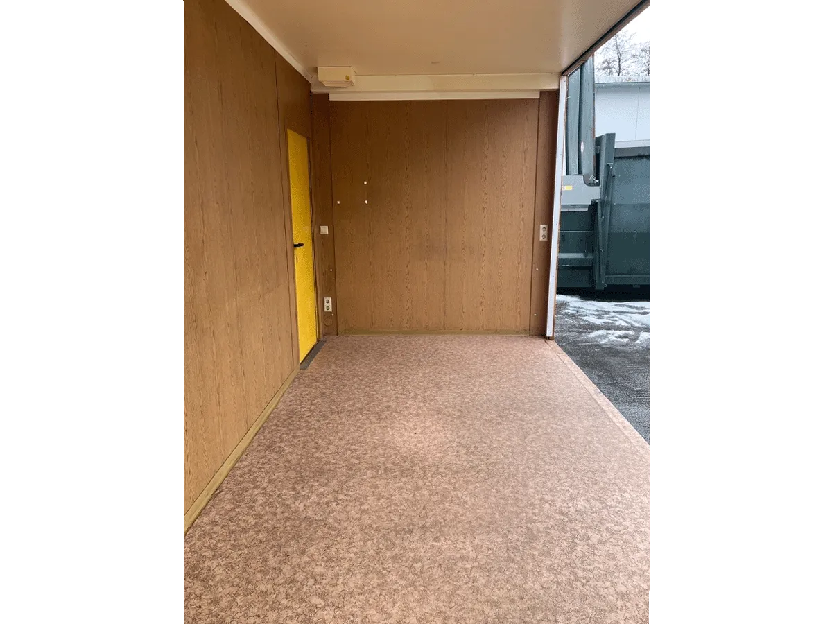 Dieser gebrauchte 20-Fuß-Bürocontainer bietet auf ca. 15 m² Nutzfläche mit zwei LED-Paneelen, Innenwänden in Eiche-/Holzoptik und einem seitlichen Eingang eine flexible Zugangslösung und eignet sich für den Einsatz als Büro- oder Aufenthaltscontainer. Zur Ausstattung gehören Dreh-Kipp-Fenster mit Rollladen sowie eine vorhandene Elektroinstallation (400/230 V, CEE 32 A). Hinweis: Ehemaliger Anlagenteil – eine Seitenwand fehlt. Bemerkungen zum Zustand: optische Gebrauchsspuren im Innen- und Außenbereich. Außenmaße: 6.055 × 2.435 × 2.890 mm.