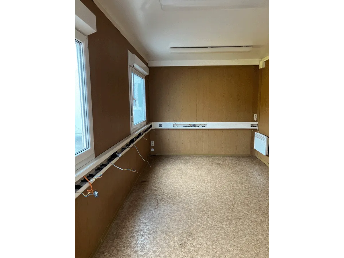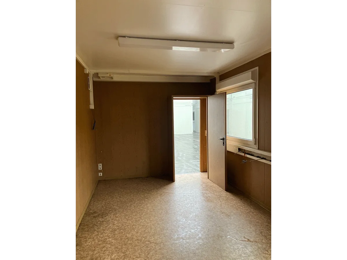 Dieser gebrauchte 20-Fuß-Bürocontainer mit 3 m Breite bietet auf ca. 18 m² Nutzfläche einen integrierten Windfang, seitliche Drehkippfenster sowie eine vorhandene Netzwerkvorbereitung und eignet sich damit für den Einsatz als Büro- oder IT-Arbeitsplatz. Innenwände in Eiche-/Holzoptik sowie eine Elektroinstallation (400/230 V, CEE 32 A) sind vorhanden. Bemerkungen zum Zustand: Elektronikschäden, Geruch, Rost sowie optische Gebrauchsspuren im Innen- und Außenbereich. Außenmaße: 6.055 × 3.000 × 2.890 mm.