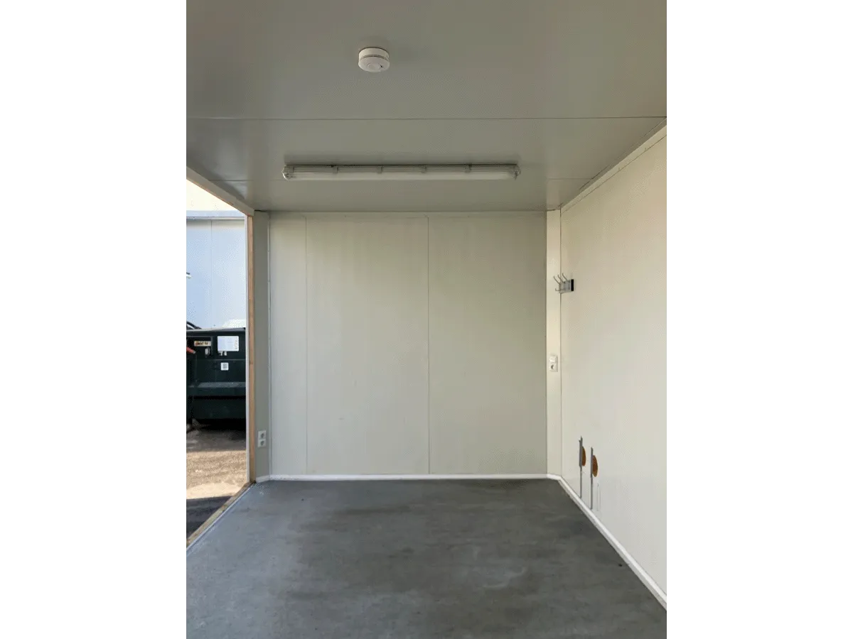Dieser gebrauchte 20-Fuß-Bürocontainer in extrabreiter Ausführung bietet auf ca. 18 m² Nutzfläche in Grauweiß ein Dreh-Kipp-Fenster mit Rollladen sowie eine vorhandene Elektroinstallation (400/230 V, CEE 32 A) und eignet sich für den Einsatz als Büro- oder Funktionseinheit. Eine Außentür ist im Datenblatt nicht ausgewiesen. Hinweis: Ehemaliger Anlagenteil – eine Seitenwand fehlt. Bemerkungen zum Zustand: Bohrlöcher, beschädigte Wandpaneele sowie optische Gebrauchsspuren im Innen- und Außenbereich. Außenmaße: 6.055 × 3.000 × 2.890 mm.