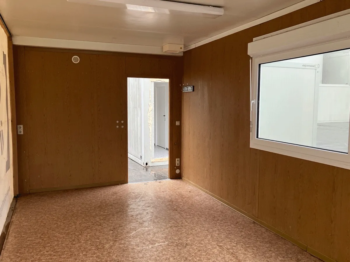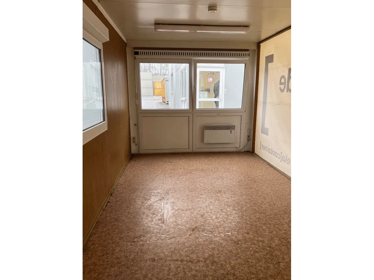 Dieser gebrauchte 20-Fuß-Bürocontainer mit 3 m Breite bietet auf ca. 18 m² Nutzfläche Innenwände in Eiche-/Holzoptik sowie Dreh-Kipp-Fenster mit Rollladen und eignet sich für den Einsatz als Büro- oder Funktionseinheit. Eine Elektroinstallation (400/230 V, CEE 32 A) ist vorhanden. Hinweis: Ehemaliger Anlagenteil – eine Seitenwand fehlt. Bemerkungen zum Zustand: Bodenschäden, Geruch, defekte Beleuchtung, Rost, Undichtigkeiten, beschädigte Zierleisten sowie optische Gebrauchsspuren im Innen- und Außenbereich. Außenmaße: 6.055 × 3.000 × 2.890 mm.