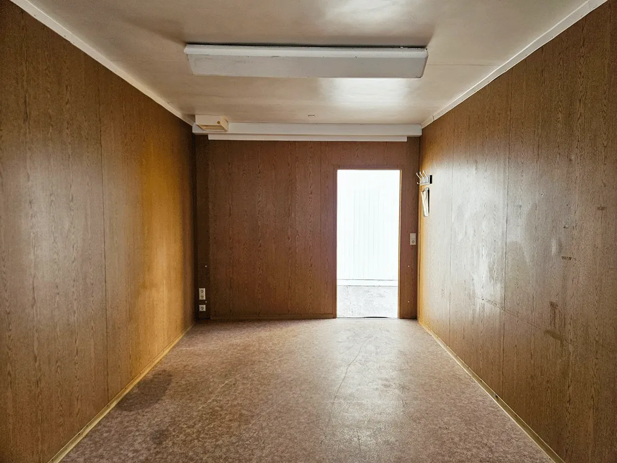 Dieser gebrauchte 20-Fuß-Bürocontainer mit 3 m Breite bietet auf ca. 18 m² Nutzfläche eine funktionale Grundausstattung mit Innenwänden in Eiche-/Holzoptik, Drehkippfenstern mit Rollladen sowie gesicherter Außentür. Eine Elektroinstallation (400/230 V, CEE 32 A) ist vorhanden und ermöglicht den Einsatz als Büro- oder Funktionscontainer. Bemerkungen zum Zustand: Bodenschäden, Bohrlöcher, defekte Beleuchtung sowie optische Gebrauchsspuren im Innen- und Außenbereich. Außenmaße: 6.055 × 3.000 × 2.890 mm.