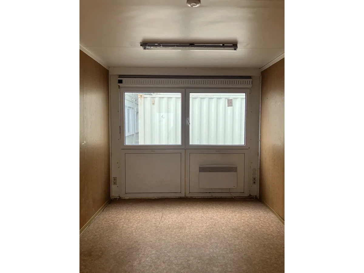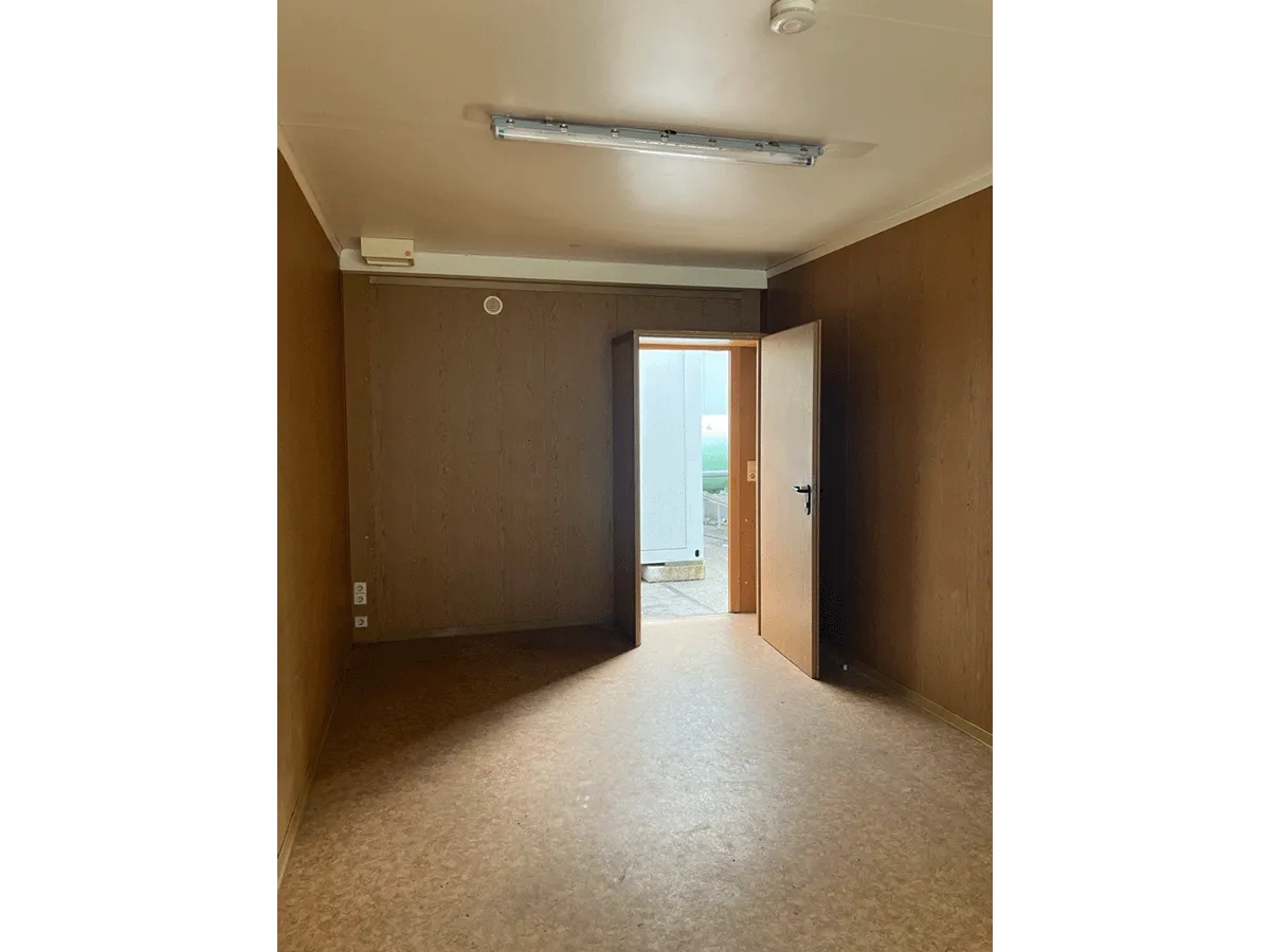 Dieser gebrauchte 20-Fuß-Bürocontainer mit 3 m Breite bietet auf ca. 18 m² Nutzfläche einen integrierten Windfang sowie Innenwände in Eiche-/Holzoptik und eignet sich für den Einsatz als Büro- oder Aufenthaltscontainer. Zur Ausstattung gehören Dreh-Kipp-Fenster mit Rollladen sowie eine vorhandene Elektroinstallation (400/230 V, CEE 32 A). Bemerkungen zum Zustand: Bodenschäden, Geruch, defekte Beleuchtung, Rost, beschädigte Zierleisten sowie optische Gebrauchsspuren im Innen- und Außenbereich. Außenmaße: 6.055 × 3.000 × 2.890 mm.
