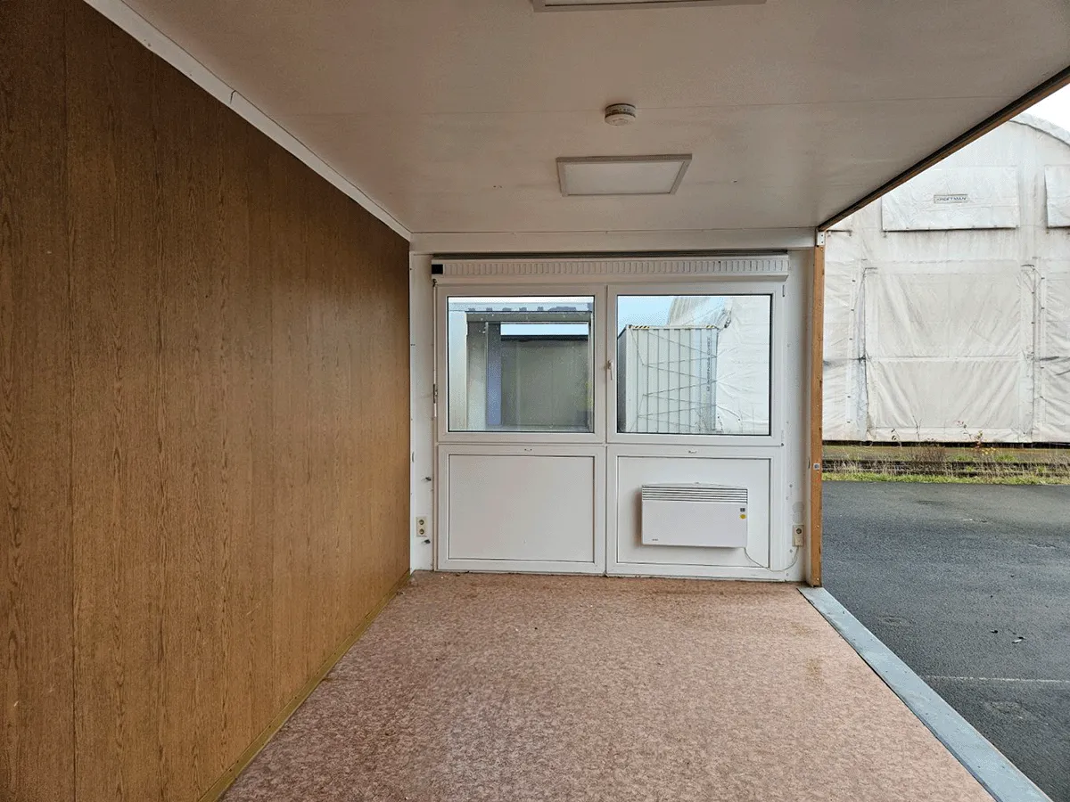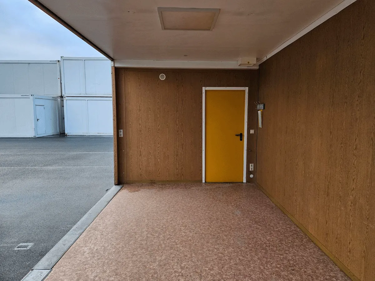 Dieser gebrauchte 20-Fuß-Bürocontainer mit 3 m Breite bietet auf ca. 18 m² Nutzfläche eine erweiterte Raumlösung für gewerbliche Büro- oder Sozialraumnutzung. Innenwände in Eiche-/Holzoptik und ein marmorierter PVC-Boden schaffen eine nutzbare Innenstruktur. Drehkippfenster mit Rollladen, eine gesicherte Außentür sowie eine Elektroinstallation (400/230 V, CEE 32 A) sind vorhanden. Hinweis: Ehemaliger Anlagenteil – eine Seitenwand fehlt. Bemerkungen zum Zustand: Bodenschäden sowie optische Gebrauchsspuren im Innen- und Außenbereich. Außenmaße: 6.055 × 3.000 × 2.890 mm.