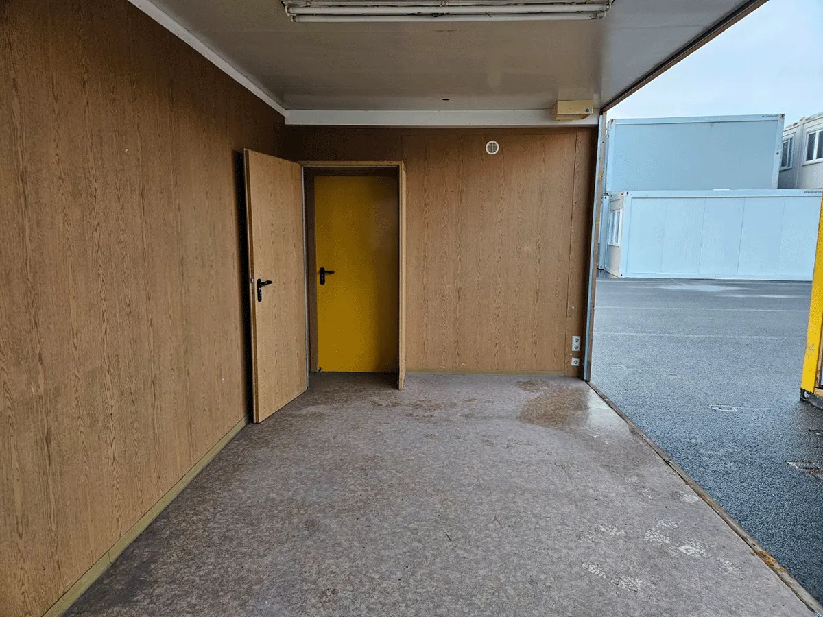 Dieser gebrauchte 20-Fuß-Bürocontainer mit 3 m Breite bietet auf ca. 18 m² Nutzfläche einen integrierten Windfang sowie einen stirnseitigen Wasseranschluss (keine Trinkwassereignung) und eignet sich für den Einsatz als Büro- oder Aufenthaltscontainer. Innenwände in Eiche-/Holzoptik, Dreh-Kipp-Fenster mit Rollladen sowie eine vorhandene Elektroinstallation (400/230 V, CEE 32 A) sind vorhanden. Hinweis: Ehemaliger Anlagenteil – eine Seitenwand fehlt. Bemerkungen zum Zustand: Bodenschäden, Bohrlöcher, beschädigtes Inventar, defekte Beleuchtung sowie optische Gebrauchsspuren im Innen- und Außenbereich. Außenmaße: 6.055 × 3.000 × 2.890 mm.