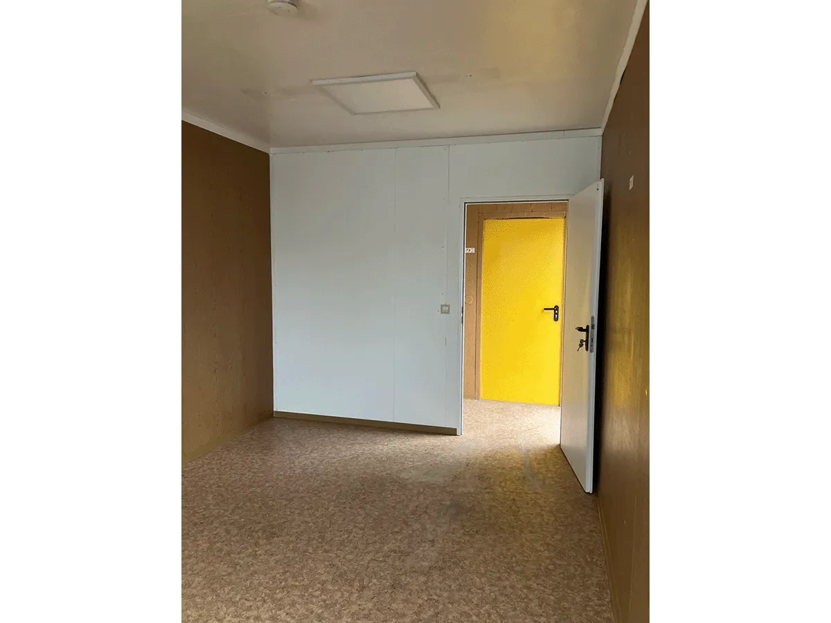 Dieser gebrauchte 20-Fuß-Bürocontainer mit 3 m Breite bietet auf ca. 18 m² Nutzfläche zwei LED-Paneele sowie einen integrierten Windfang und eignet sich für den Einsatz als Büro- oder Aufenthaltscontainer. Innenwände in Eiche-/Holzoptik, Dreh-Kipp-Fenster mit Rollladen sowie eine vorhandene Elektroinstallation (400/230 V, CEE 32 A) sind vorhanden. Hinweis: Seitliche Türausschnitte vorhanden. Bemerkungen zum Zustand: Bodenschäden, Bohrlöcher, Wandlöcher, beschädigte Wandpaneele sowie optische Gebrauchsspuren im Innen- und Außenbereich. Außenmaße: 6.055 × 3.000 × 2.890 mm.