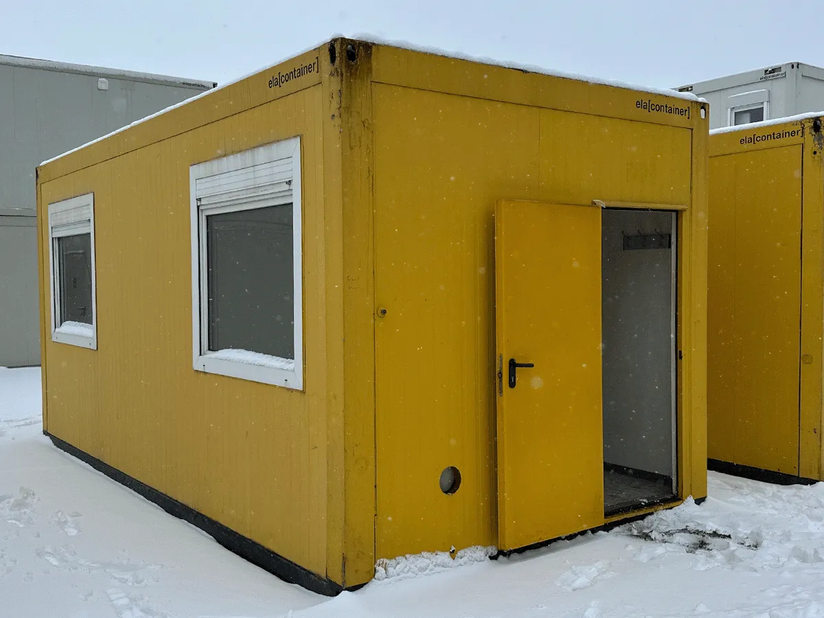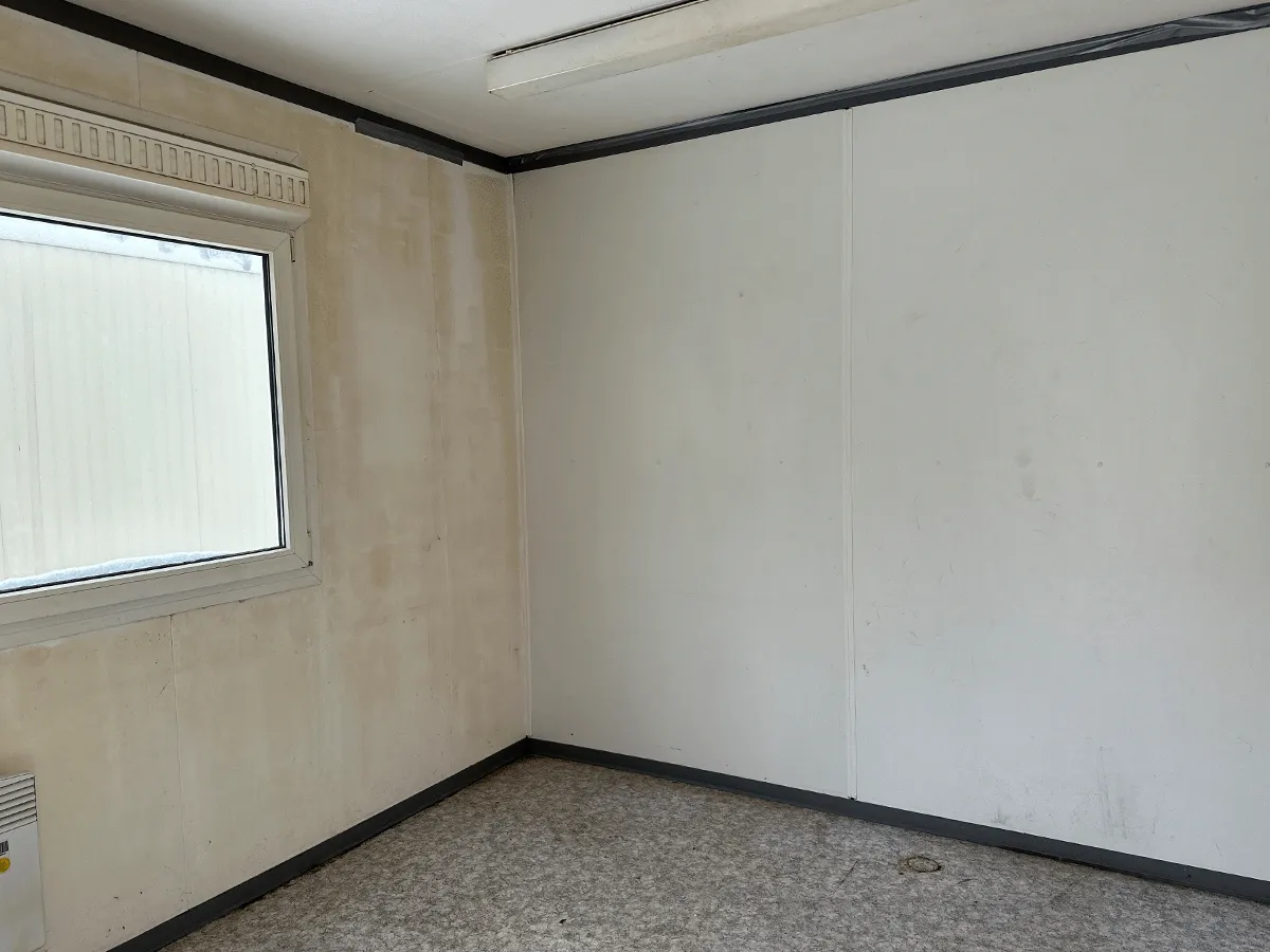 Dieser gebrauchte 20-Fuß-Bürocontainer mit 3 m Breite bietet auf ca. 18 m² eine einfache Bürostruktur mit Innenwänden in Eiche-/Holzoptik sowie zwei stirnseitigen Eingängen. Die doppelte Zugangssituation ermöglicht flexible Nutzungsszenarien, etwa für getrennte Arbeitsbereiche oder unterschiedliche Zugänge. Eine Elektroinstallation (400/230 V, CEE 32 A) ist vorhanden; die seitlich angeordneten Fenster sorgen für Belichtung im Innenraum. Bemerkungen zum Zustand: Bodenschäden, Bohrlöcher, Bodenlöcher, beschädigtes Inventar, ein fehlender Rauchmelder, Rost, beschädigte Zierleisten sowie optische Gebrauchsspuren im Innen- und Außenbereich. Maße: 6.055 × 3.000 × 2.890 mm.