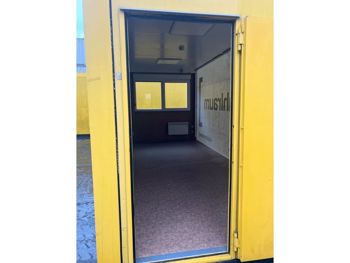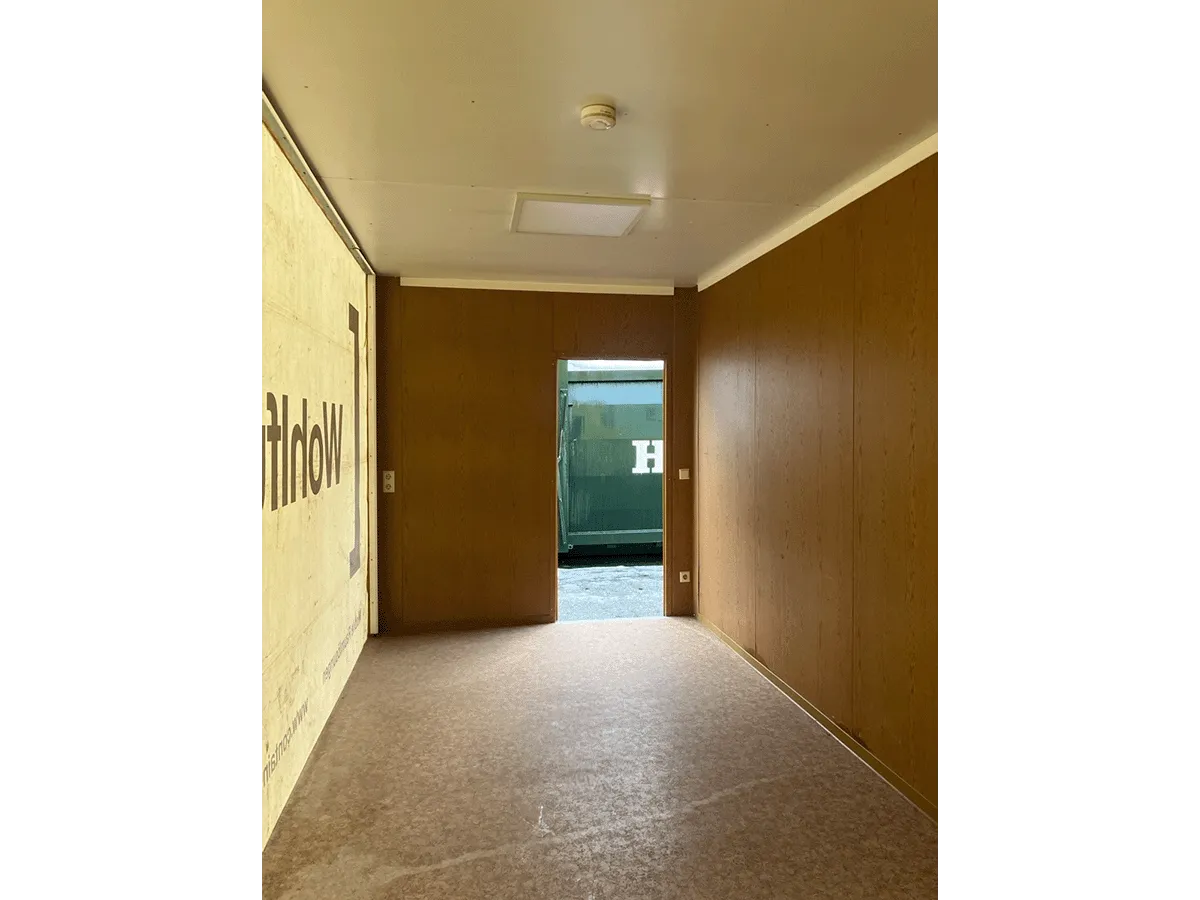 Dieser gebrauchte 20-Fuß-Bürocontainer bietet auf ca. 15 m² Nutzfläche mit zwei LED-Paneelen, Innenwänden in Eiche-/Holzoptik und einer vorhandenen Elektroinstallation (400/230 V, CEE 32 A) eine funktionale Grundausstattung und eignet sich für den Einsatz als Büro- oder Aufenthaltscontainer. Dreh-Kipp-Fenster mit Rollladen sowie eine gesicherte Außentür sind vorhanden. Hinweis: Ehemaliger Anlagenteil – eine Seitenwand fehlt, Abdeckfolie eingespannt. Bemerkungen zum Zustand: Bodenschäden sowie optische Gebrauchsspuren im Innen- und Außenbereich. Außenmaße: 6.055 × 2.435 × 2.890 mm.