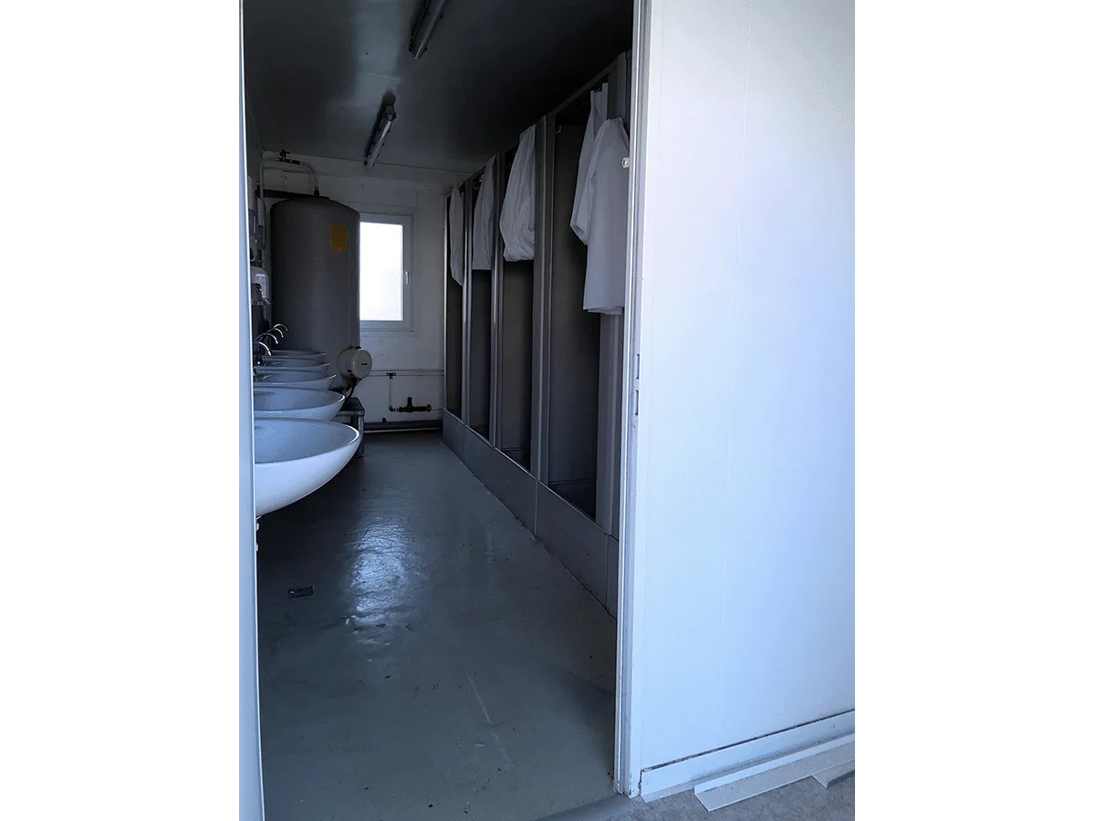 Dieser gebrauchte 20-Fuß-Sanitärcontainer bietet eine funktionale Ausstattung mit mehreren Drehkippfenstern inklusive Rollladen, gesicherter Außentür sowie einem stirnseitigen Wasseranschluss; keine Trinkwassereignung. Eine Elektroinstallation (400/230 V, CEE 32 A) ist vorhanden und ermöglicht den Einsatz auf Baustellen oder temporären Standorten. Standort des Containers ist Frankenberg/Sachsen. Bemerkungen zum Zustand: Bodenschäden, beschädigte Wandpanele sowie optische Gebrauchsspuren im Innen- und Außenbereich. Außenmaße: 6.055 × 2.435 × 2.890 mm.